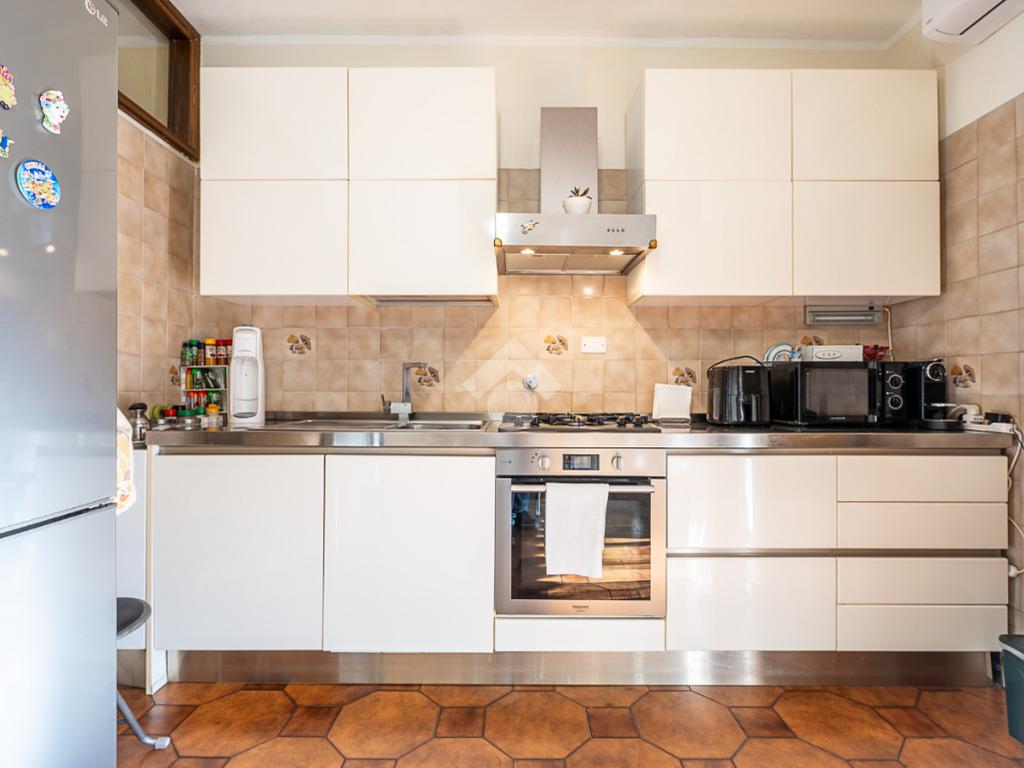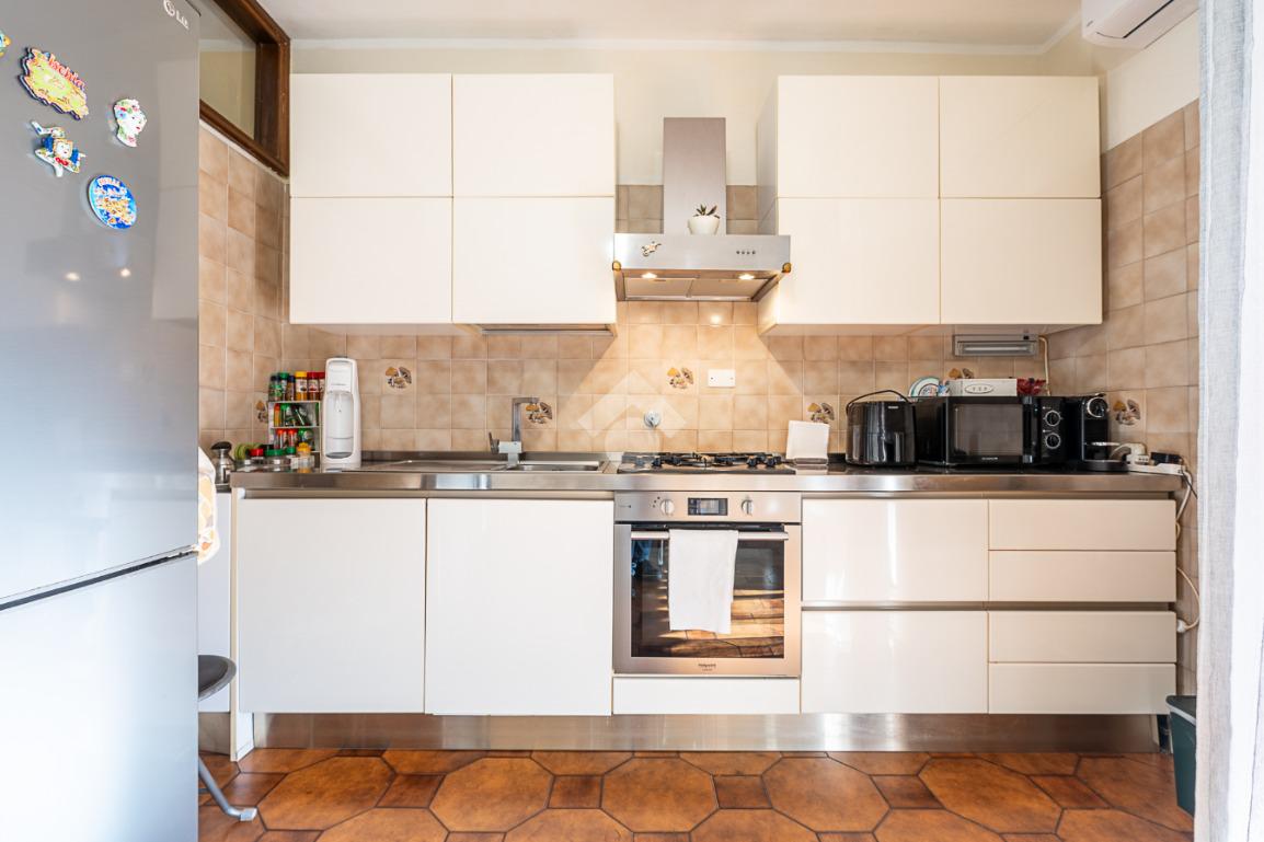 L’edificio è stato oggetto di un intervento completo che ha previsto l’installazione di pannelli solari, la sostituzione integrale degli infissi e, a breve, l’aggiunta di un ascensore che garantirà maggiore comfort e accessibilità. L’ingresso si apre su un accogliente soggiorno che conduce alla cucina abitabile, resa luminosa da ampie vetrate scorrevoli affaccianti su un terrazzo vivibile e arredabile, perfetto per momenti di relax e convivialità all’aperto.