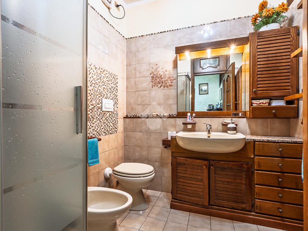 A completare il piano, un bagno dotato di doccia e ventilazione forzata. Una scala interna in legno collega la zona giorno al piano superiore, dove si sviluppa la zona notte composta da due camere da letto, entrambe luminose e di ampie dimensioni, e da un secondo bagno dotato di vasca.