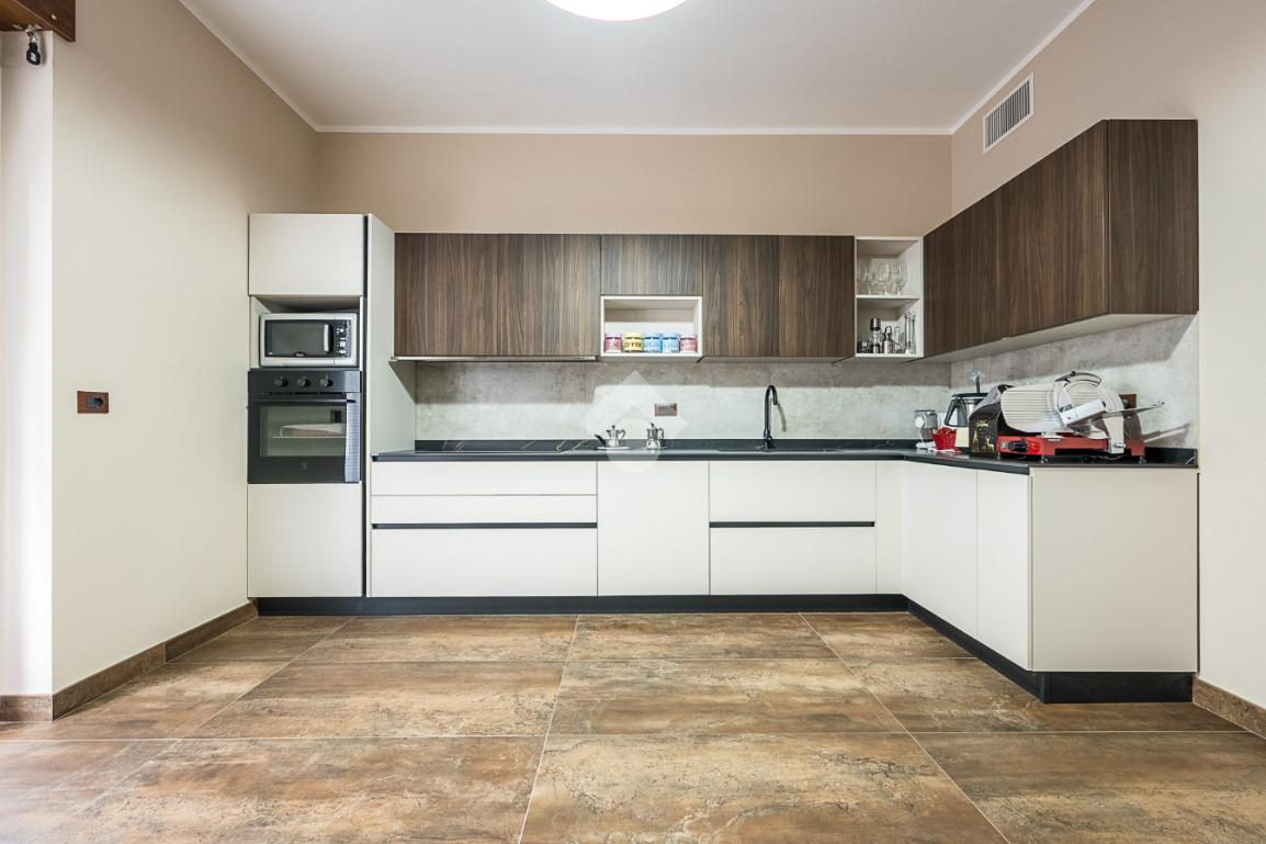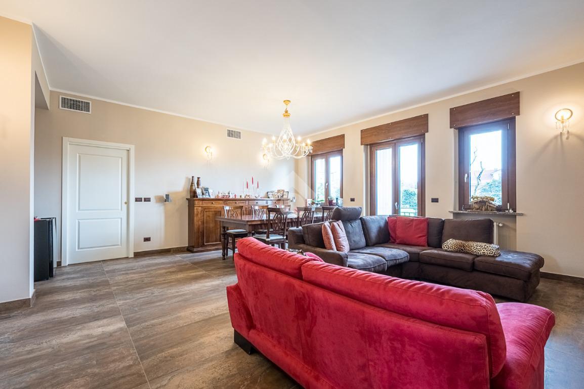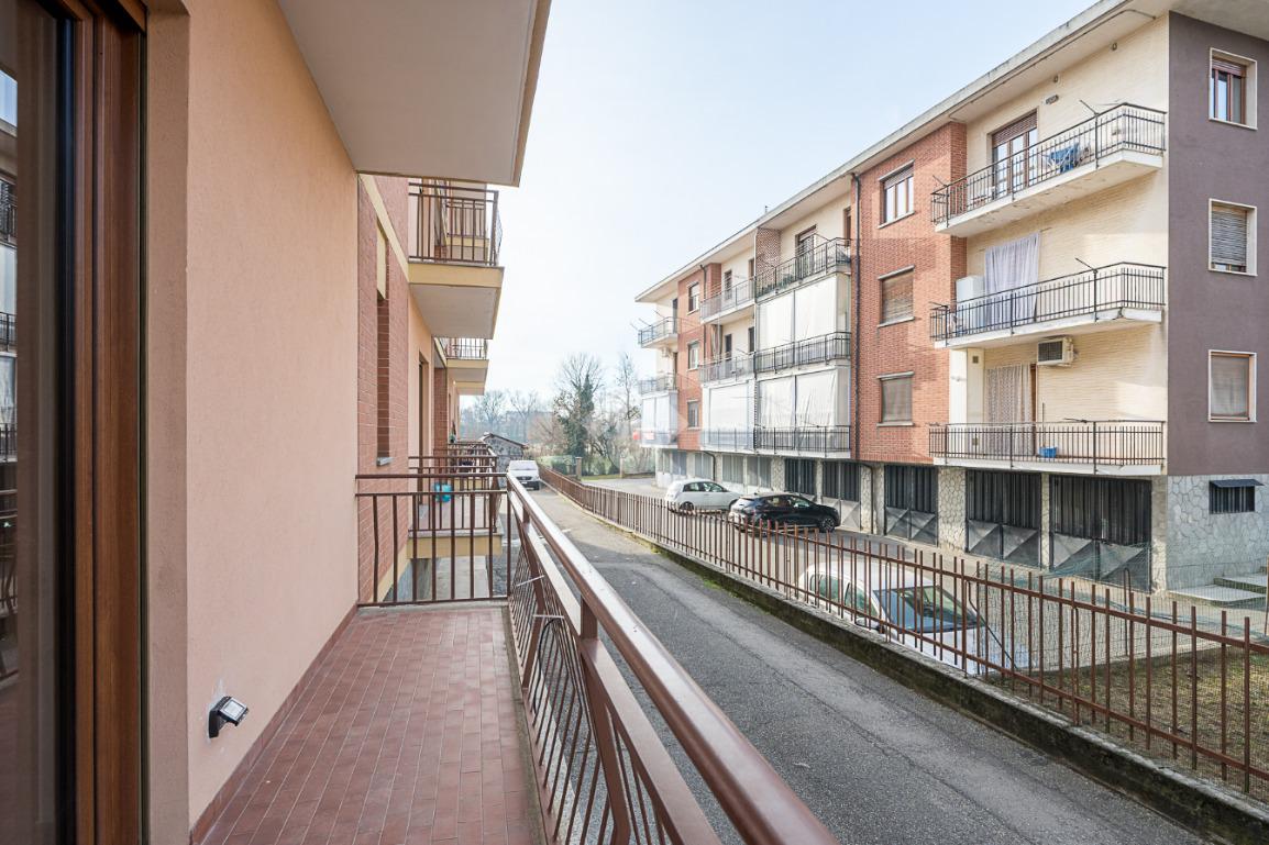 In contesto tranquillo e ben curato di sole sei famiglie, all’interno di una palazzina degli anni ’80, proponiamo appartamento al piano rialzato completamente ristrutturato nel dicembre 2025.L’immobile è stato oggetto di una ristrutturazione totale che ha interessato impianti elettrici e idraulici, infissi, finiture e dotazioni moderne come aria canalizzata, tapparelle elettriche con sistema di emergenza manuale e porta blindata. La distribuzione degli spazi è funzionale e ben organizzata, con una netta separazione tra zona giorno e zona notte tramite si apre su un ampio soggiorno di generose dimensioni, luminoso e accogliente, caratterizzato da spazi ben proporzionati che permettono una facile disposizione degli arredi. L’ambiente è valorizzato da grandi finestre e da una porta finestra che garantiscono un’ottima illuminazione naturale e consentono l’accesso diretto al finiture moderne e i toni neutri delle pareti rendono il soggiorno elegante e facilmente personalizzabile. La metratura consente di ospitare comodamente sia una zona relax con divani sia una zona pranzo, creando un ambiente conviviale e funzionale, ideale per la vita è ulteriormente impreziosita da punti luce che conferiscono carattere e calore all’ambiente, rendendo il soggiorno il vero cuore della casa. La cucina è abitabile, separata, e anch’essa con uscita sul balcone, ideale per chi ama vivere la casa in modo pratico e disimpegno introduce alla zona notte, composta da tre camere da letto, di cui due con accesso al balcone e una cameretta finestrata. Una delle due camere matrimoniali è dotata di bagno privato in camera, mentre il bagno principale, finestrato, è completo di doccia e la proprietà un box e una cantina collegati tra loro, oltre a una porzione di giardino ad uso privato. Soluzione ideale per chi cerca un’abitazione moderna, pronta da abitare, in un contesto riservato e di poche unità.